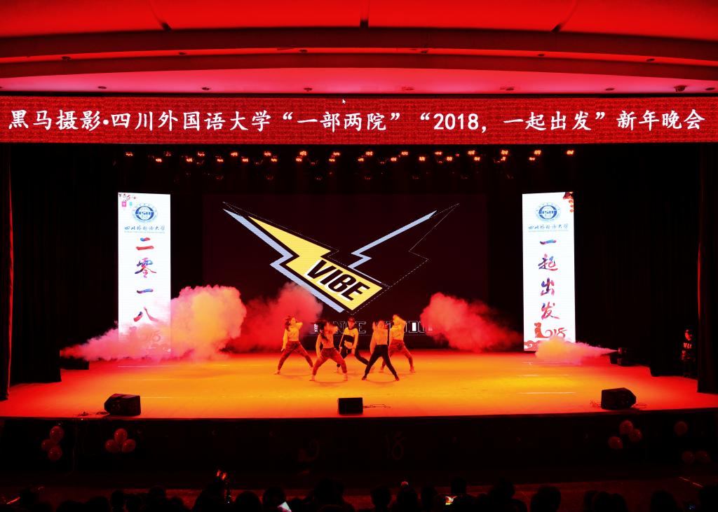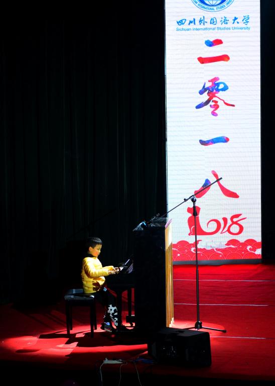 金色年华盛世昌,新年新岁人欢畅?/span>2017?/span>12?/span>21日晚,“一部两院”一场?/span>2018,一起出发”的新年晚会在东区大礼堂举行。四川外国语大学副校长祝朝伟、宣传统战部长崔光军、“一部两院”院长曾传芳、总支书记杨晓东等领导出席观看晚会演出?/span> 晚会在悠悠小朋友一曲“北风吹”的钢琴曲中拉开帷幕。“一部两院”各项目的师生表演了舞蹈、小品、歌曲和朗诵等节目。晚会中还穿插了抽奖环节?/span> 整个晚会中,“一部两院”的师生们以各种方式互致新年问候。晚会在欢乐祥和的气氛中以一曲“春风十里”的合唱缓缓落下帷幕?/span>